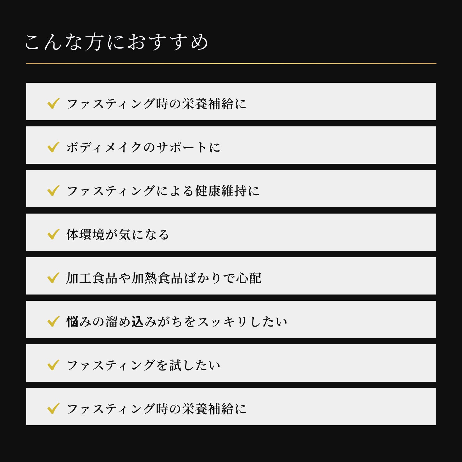 生産県まで指定した国産の生のハーブ、野菜、果物、海藻、キノコ類、穀物などを全113種類厳選し、喜界島の「さとうきび粗糖」を使って養分を浸透圧抽出。天然の複合酵素(酵母・植物性乳酸菌)が棲みついた伝統的な「ヒノキ樽」でダブル自然発酵させた独自の酵素原液を、1本(500mL)あたり98%も高配合。(2%はレモン・ユズ・梅などの果汁)プロフェッショナル仕様を極めたハイクラス酵素飲料です。